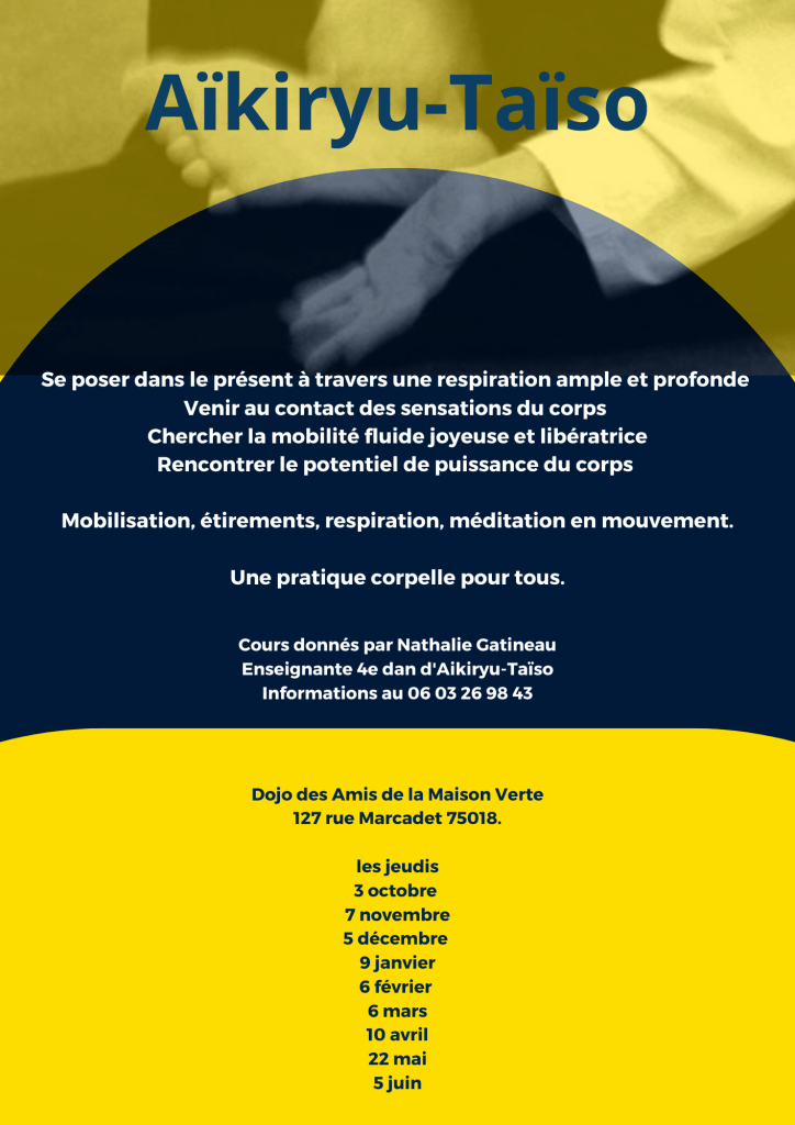Cours d’Aïkiryu-taïso, le jeudi de 19h30 à 21h30.